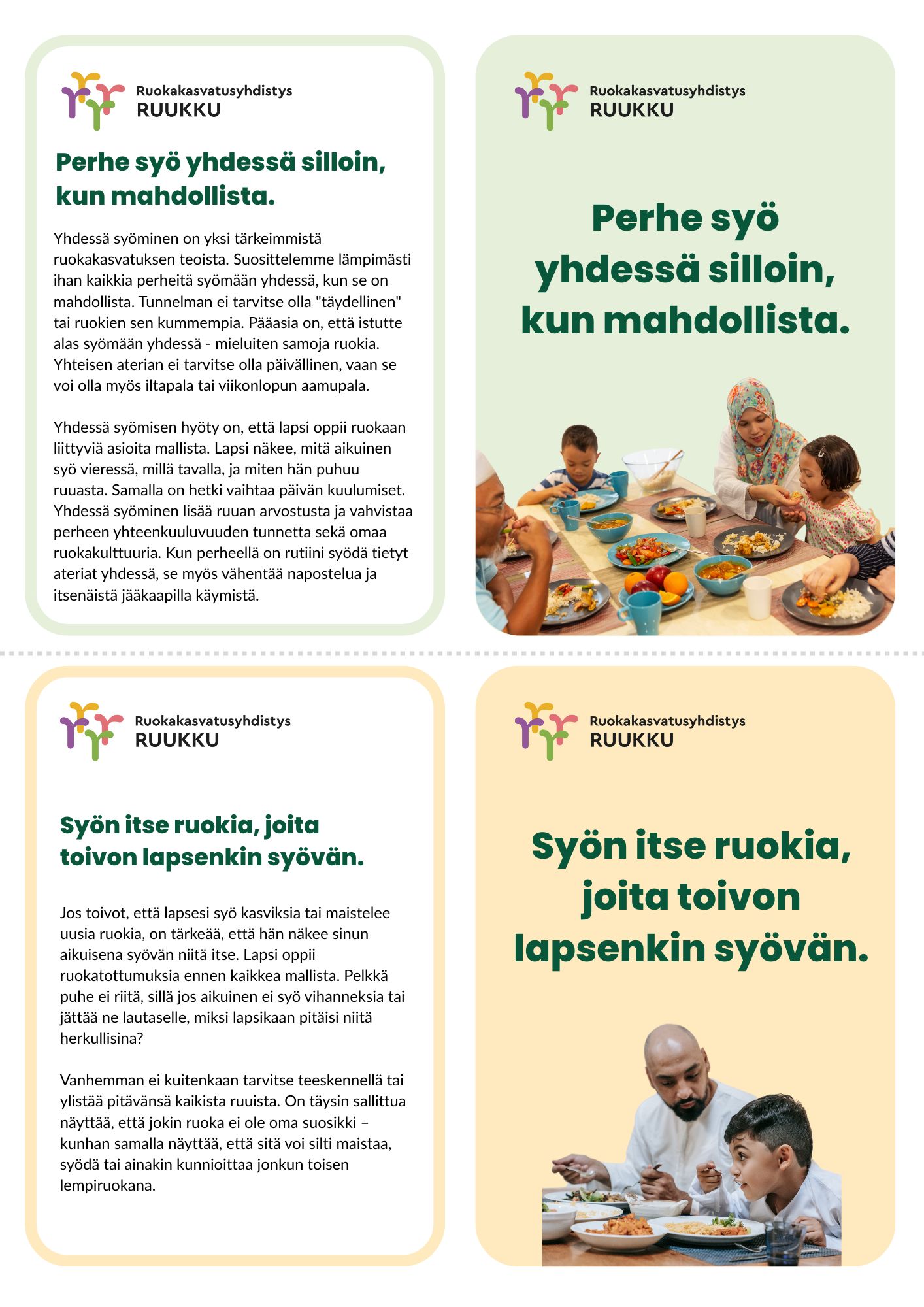 Vahvuuskortit perheille ruokakasvatuksesta eri kielillä